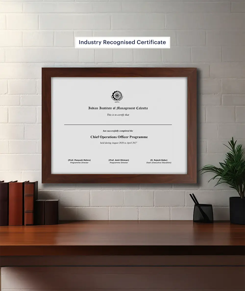 The Chief Operating Officer (COO) Programme from IIM Calcutta is a high-impact executive education programme designed to empower senior professionals transition from operational excellence to enterprise-wide strategic leadership.