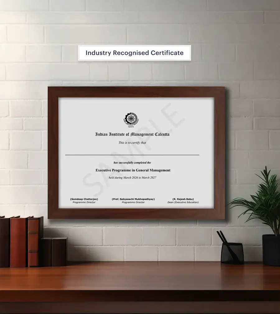 The Executive Programme in General Management at IIM Calcutta stands out as a premier option for professionals seeking to enhance their managerial capabilities. Through a combination of case studies, projects, and expert guidance, participants gain a comprehensive understanding of general management principles and strategies. Whether you're looking for a general management program or a management course that offers practical insights, our program has you covered. With a focus on real-world applications and hands-on learning, participants develop the skills needed to drive innovation, lead organizational change, and collaborate effectively with other business functions.
